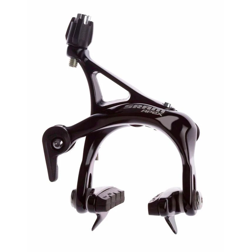 SRAM Apex Road Caliper Brakeset (front and rear wheel set), designed for all round road use, commuting, touring and training. As a result the Apex calipers feature a deep drop which can take tyres up to 28mm or 25mm tyres with mudguards depending on your frame clearance.